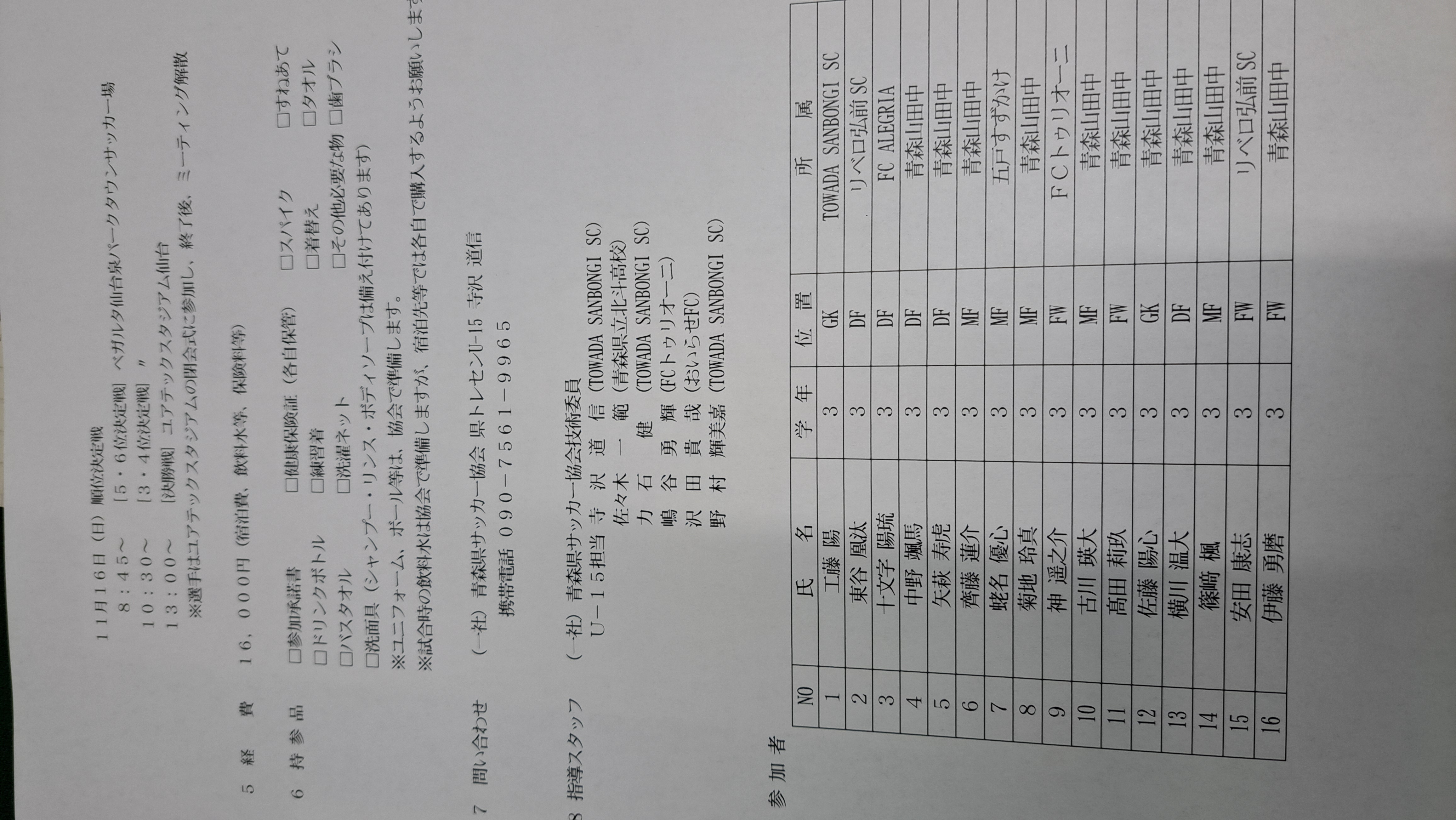 過去のメンバー記事によると、U-14は前期と後期があるようですが、今回は後期にあたりますでしょうか?
