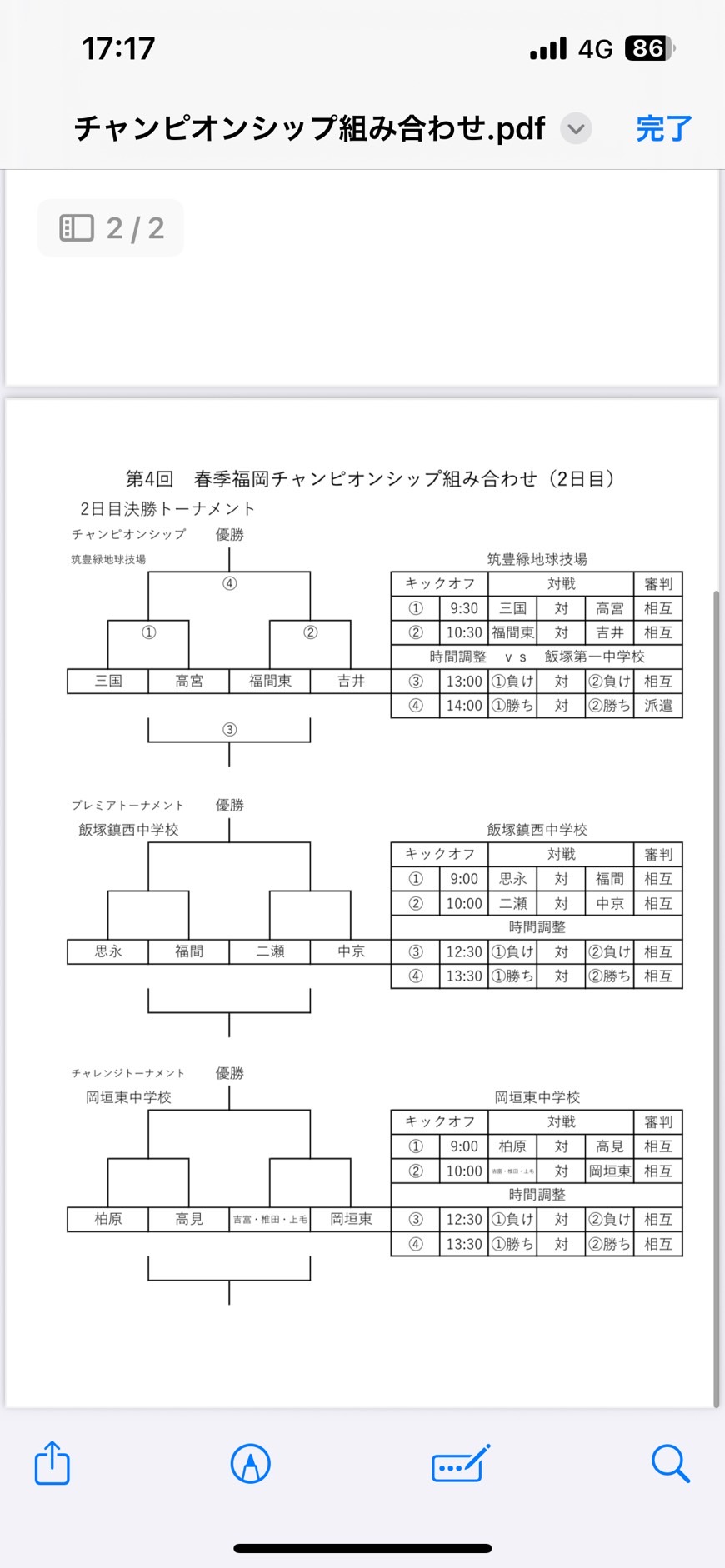 会場:筑豊緑地球技場・岡垣東中学校・飯塚鎮西中学校