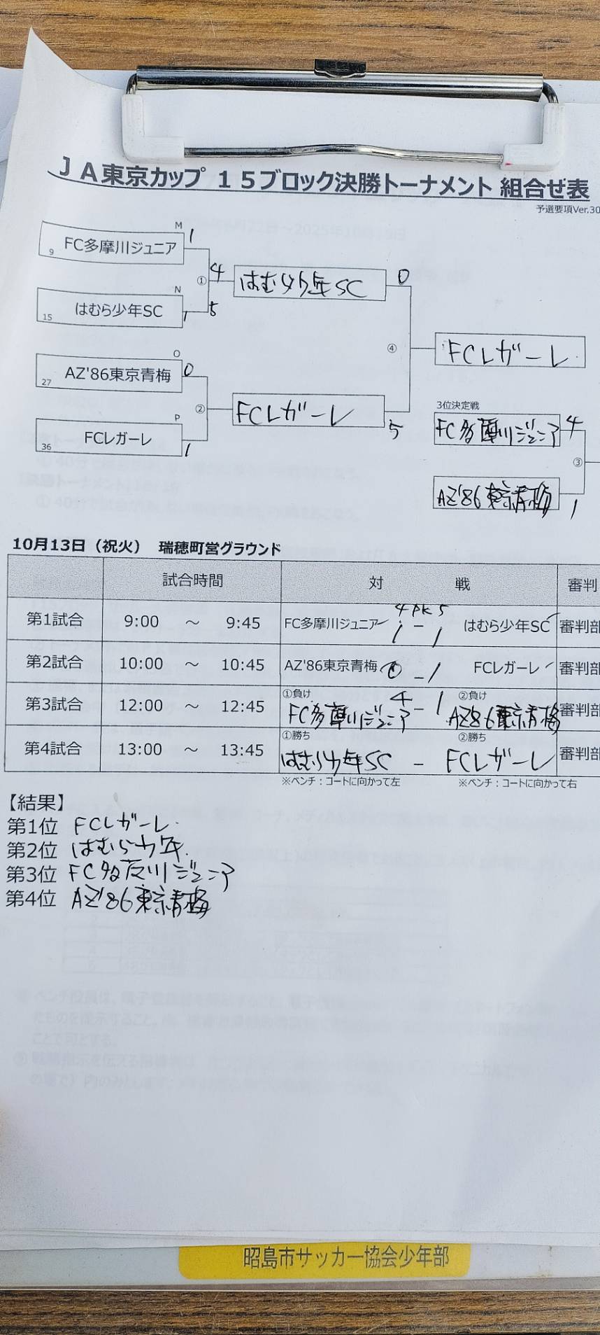 JA東京カップ15ブロックの最終結果情報ありがとうございます!