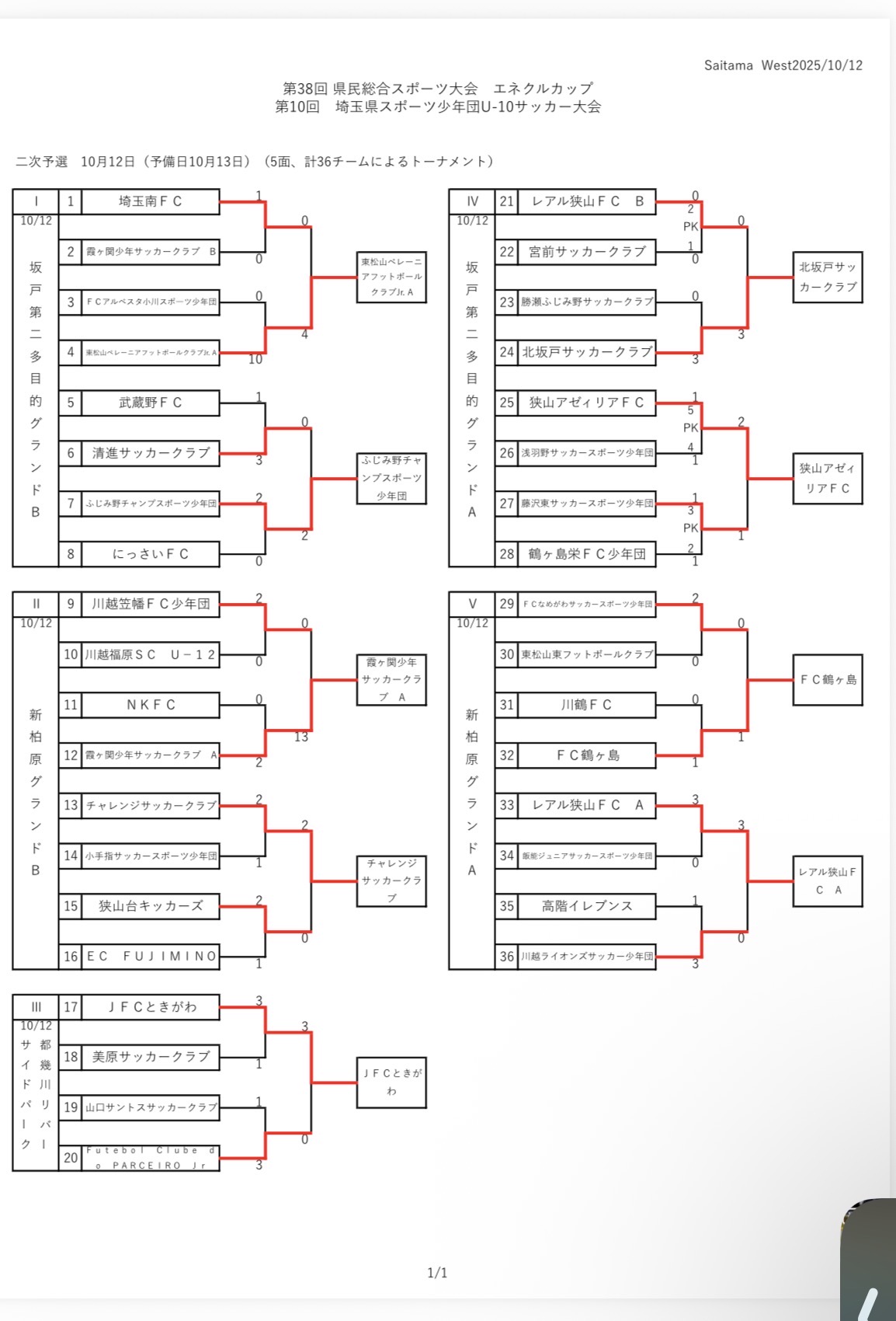 エネクルカップ埼玉県サッカー少年団U-10サッカー大会 西部地区の全試合結果情報ありがとうございます!