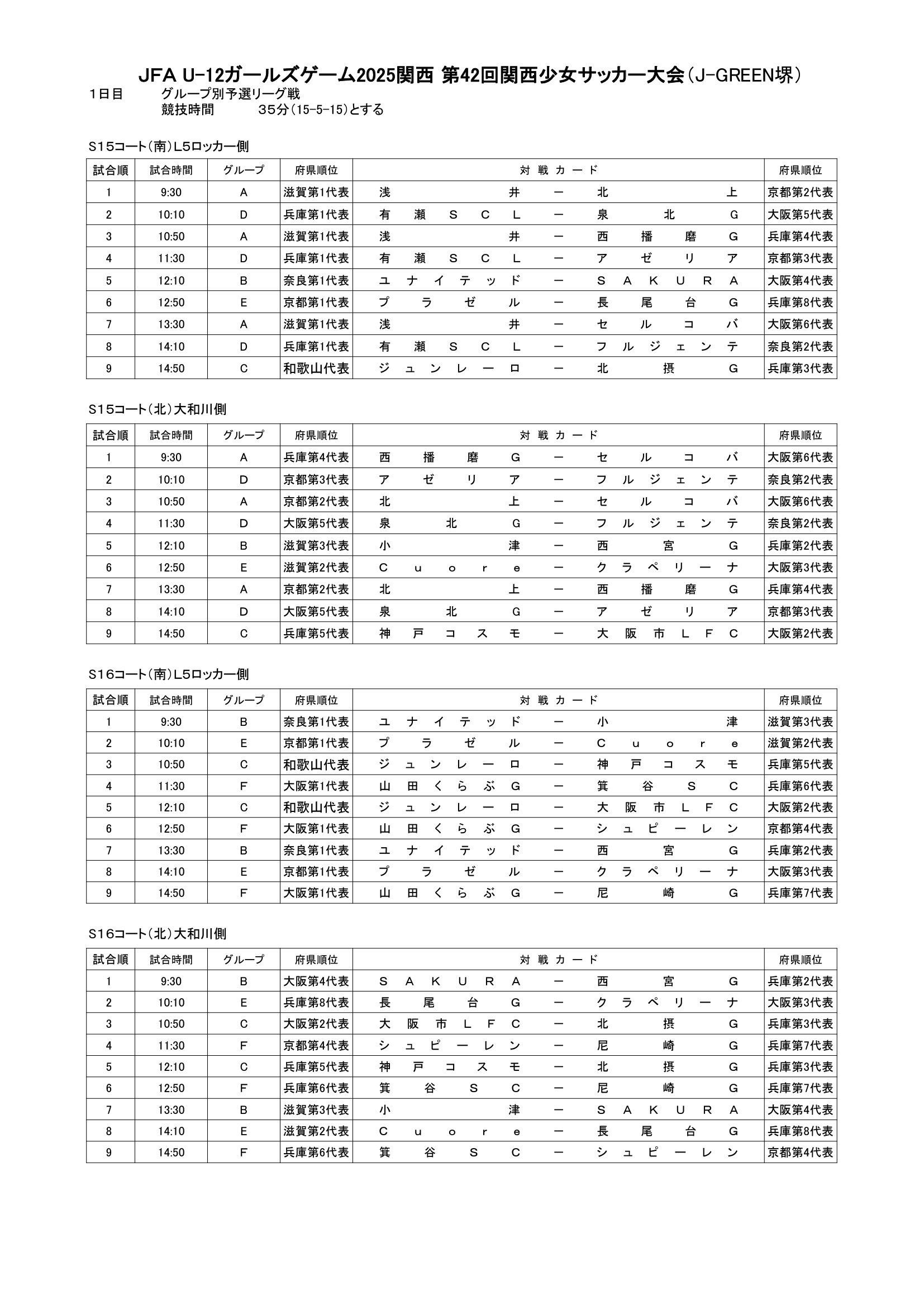 関西大会組み合わせ
