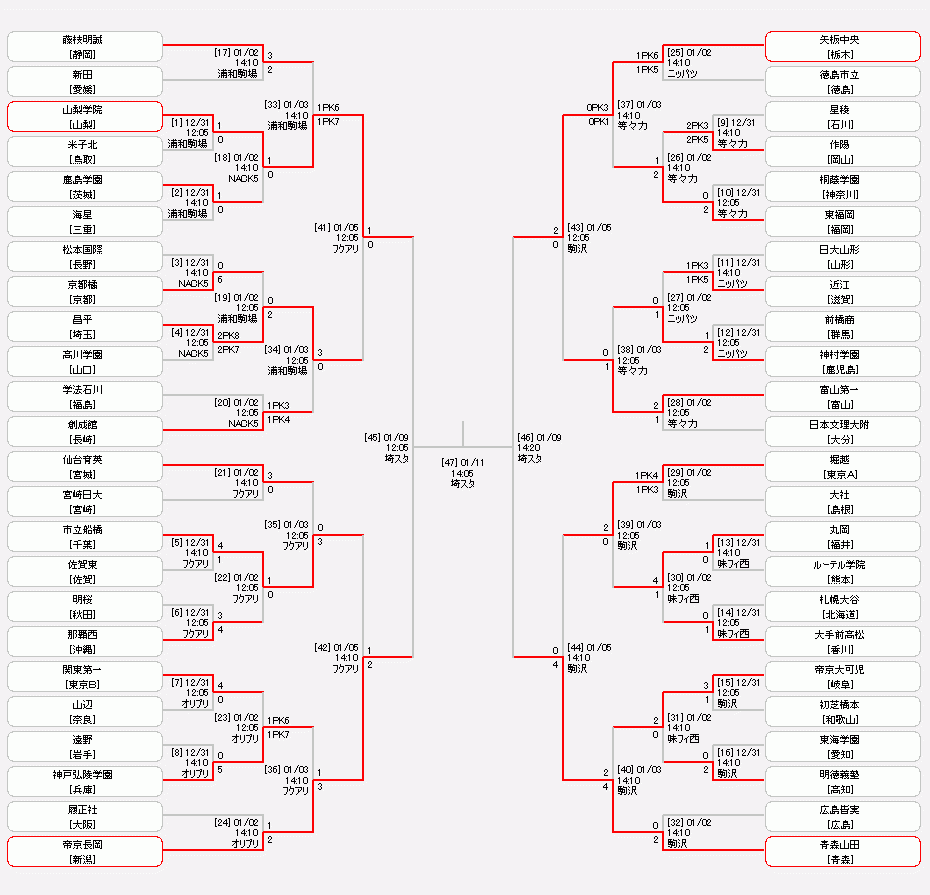 14:05 山梨学院(山梨) 2-2(PK4-2) 青森山田(青森)