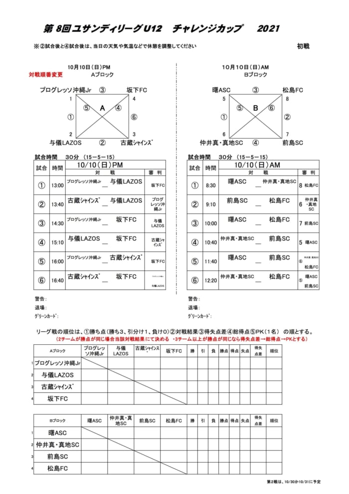 ・第8回ユサンディリーグU12チャレンジカップ2021 10/10