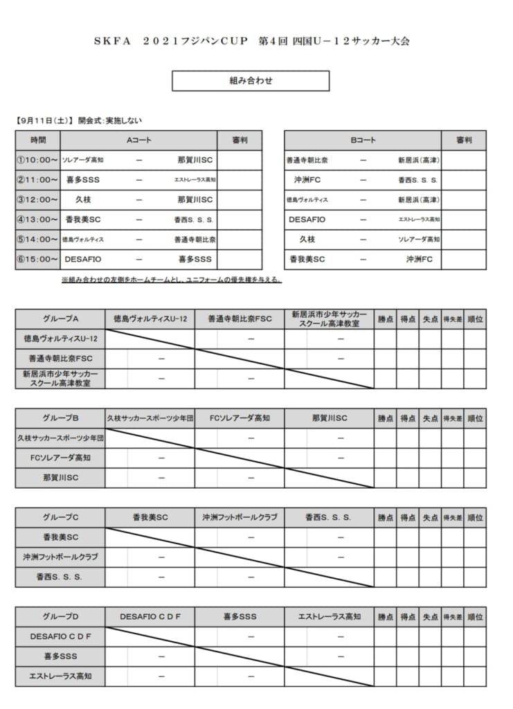 フジパン CUP 第4回四国 U-12サッカー大会 四国大会